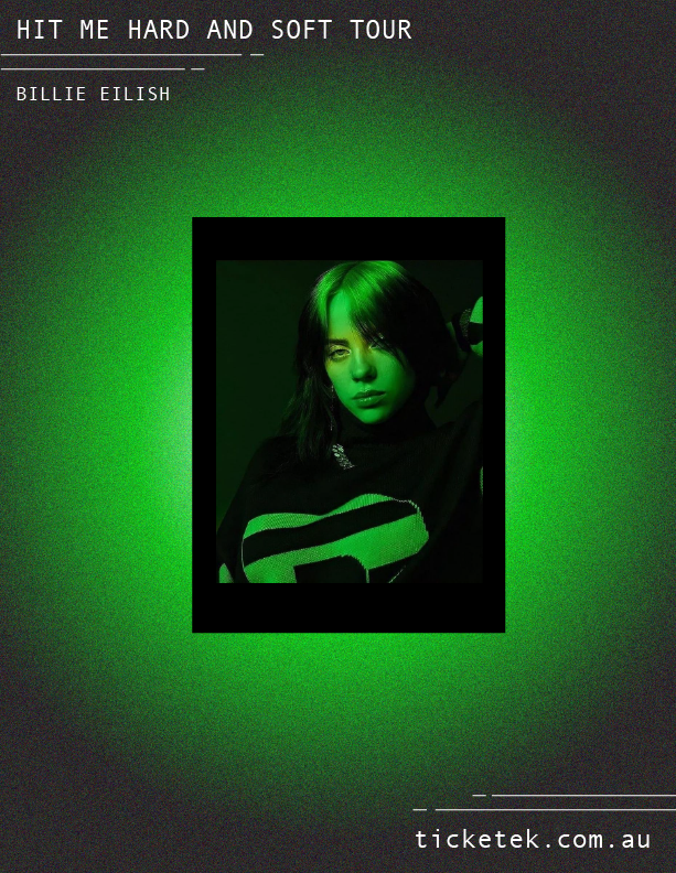 A recent passion project, crafting a series of posters and an Instagram reel for Billie Eilish's 'Hit me hard and soft tour', showcasing our dedication to visually inviting advertising.